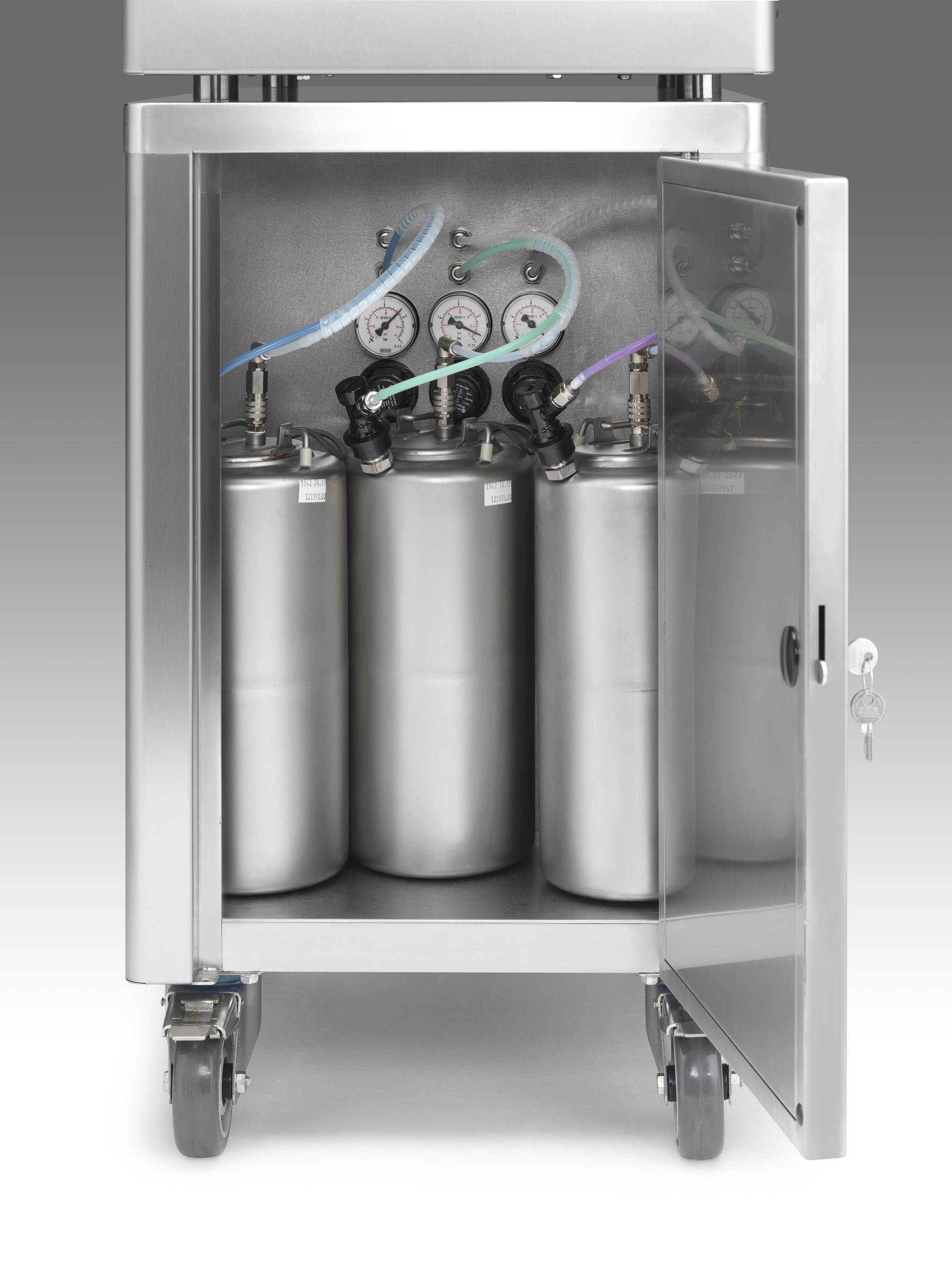Sollte der Eismix in der Softeis Selbstbedienungsmaschine zur neige gehen, zeigt der Eisautomat rechtzeitig an, dass Sie Eismix nachfüllen müssen.