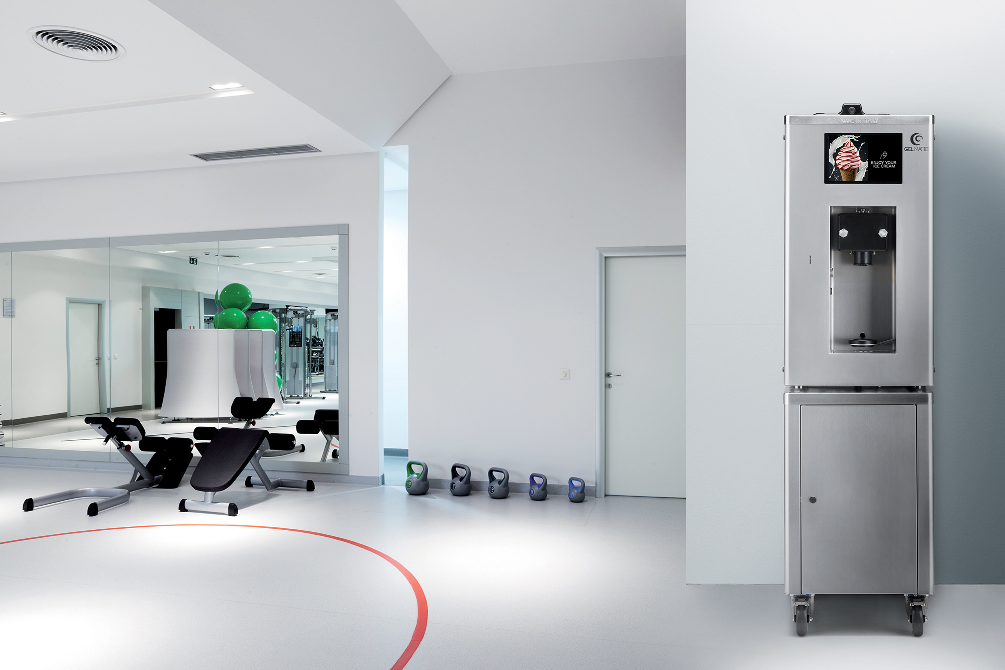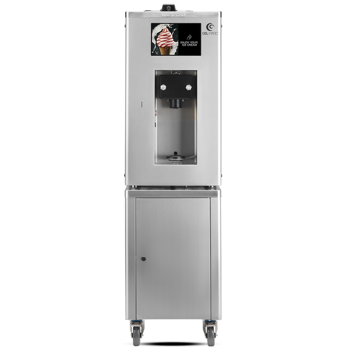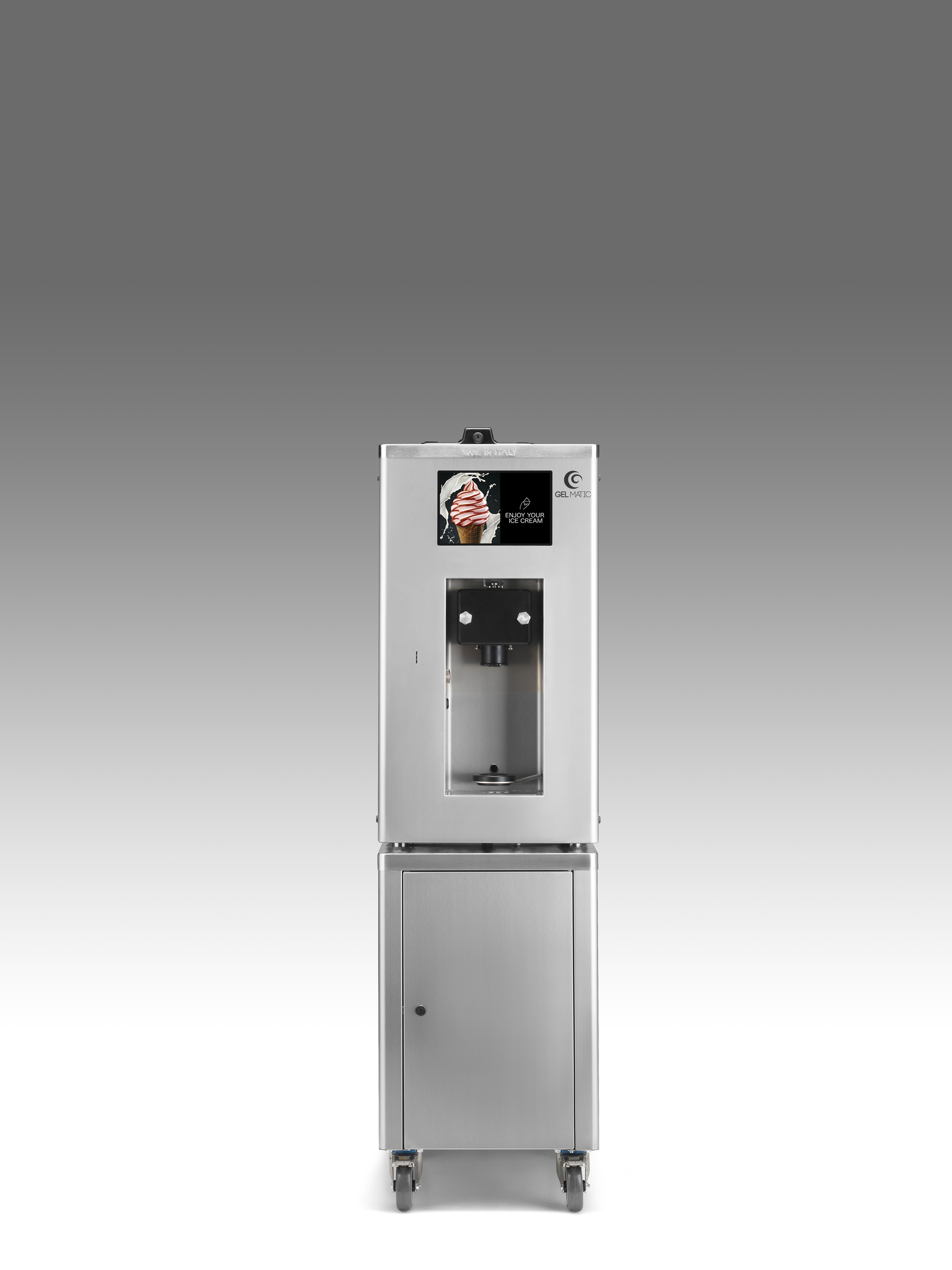 Die Self Gel 1 Kolor Up ist ein Softeis Selbstbedienungsautomat der neuesten Generation. Mit dieser Eismaschine können Sie unter anderem Softeis, Frozen Yogurt, Express Eis (eine Art von Speiseeis) herstellen.